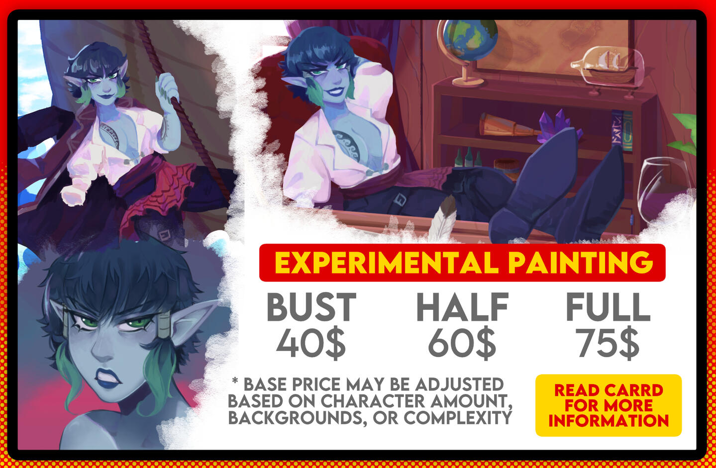 Violation of TOS will result in a permanent blacklist from future commissions.